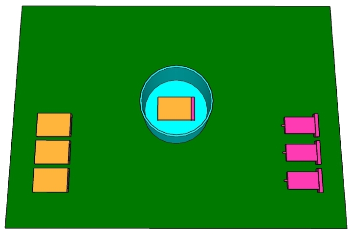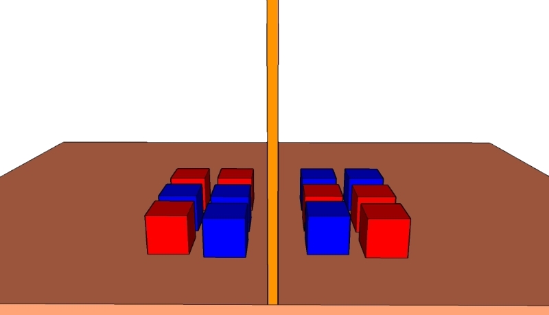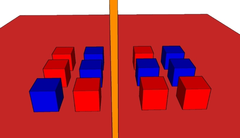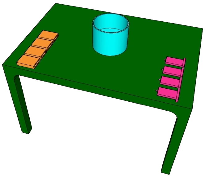 در دو طرف میز، دو گروه شیء قرار می دهیم. اشیاء به گونه ای انتخاب شده اند که می توانند به هم متصل شوند