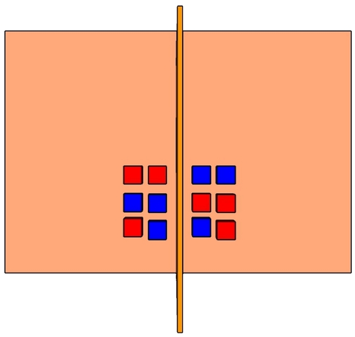 روش دیگری که برای نصف کردن فضای دیداری کودک به دو طرف چپ و راست می‌توانیم از آن استفاده کنیم قراردادن یک صفحه عمودی روی یک میز و تقسیم سطح میز به دو طرف چپ و راست است