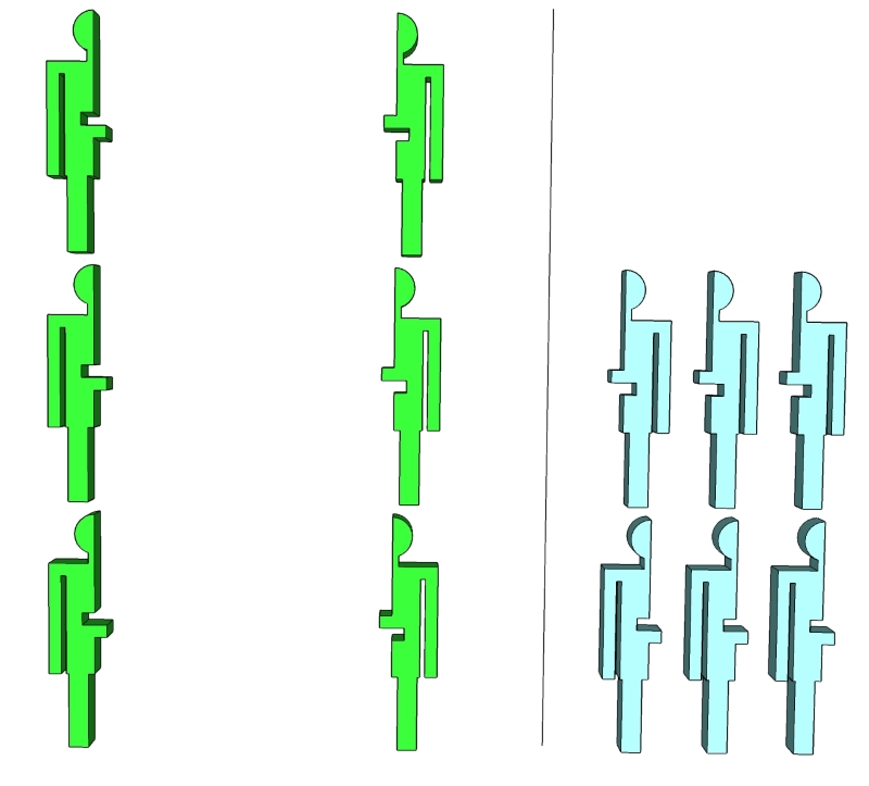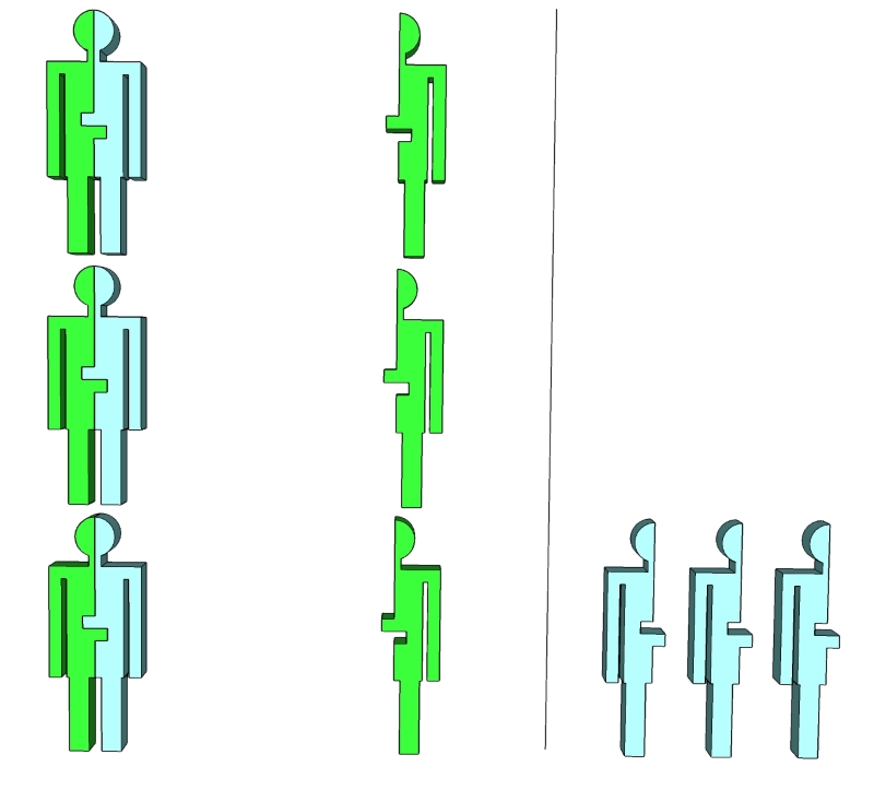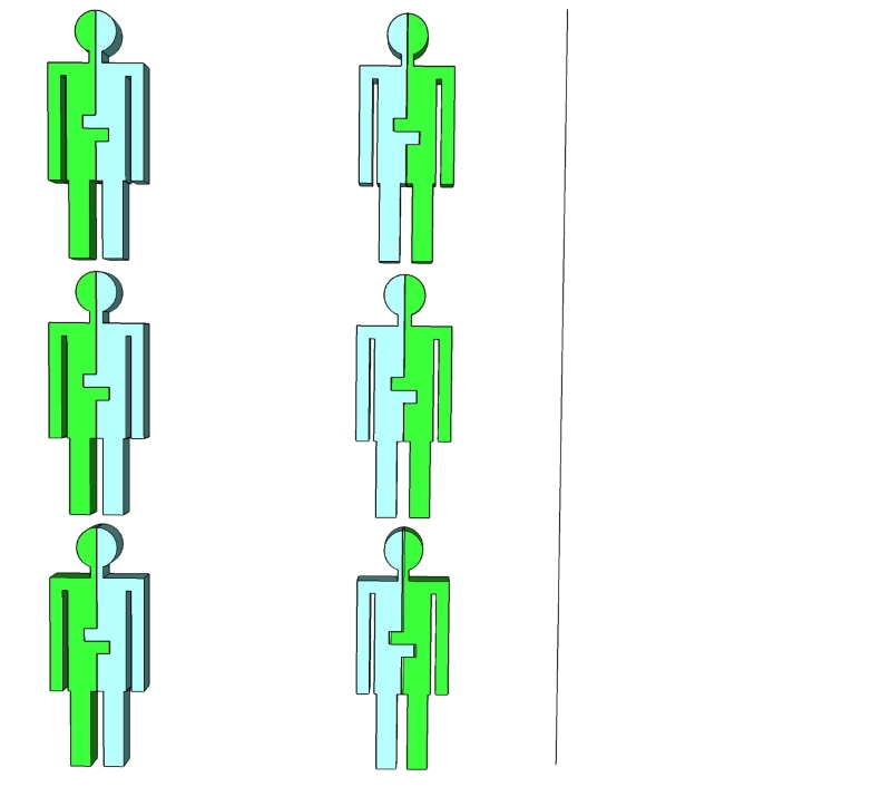 آدمک هایی داریم که برخی از آنها نیمه ى چپ و برخی دیگر نیمه ى راست ندارند