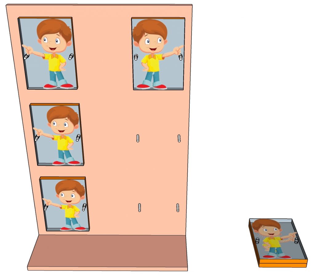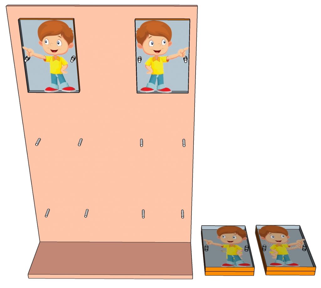 کودک باید همزمان با دست راست و چپ خود، یک شیء از سمت همان دست برداشته و از ورودی همان سمت، درون محفظه قرار دهد